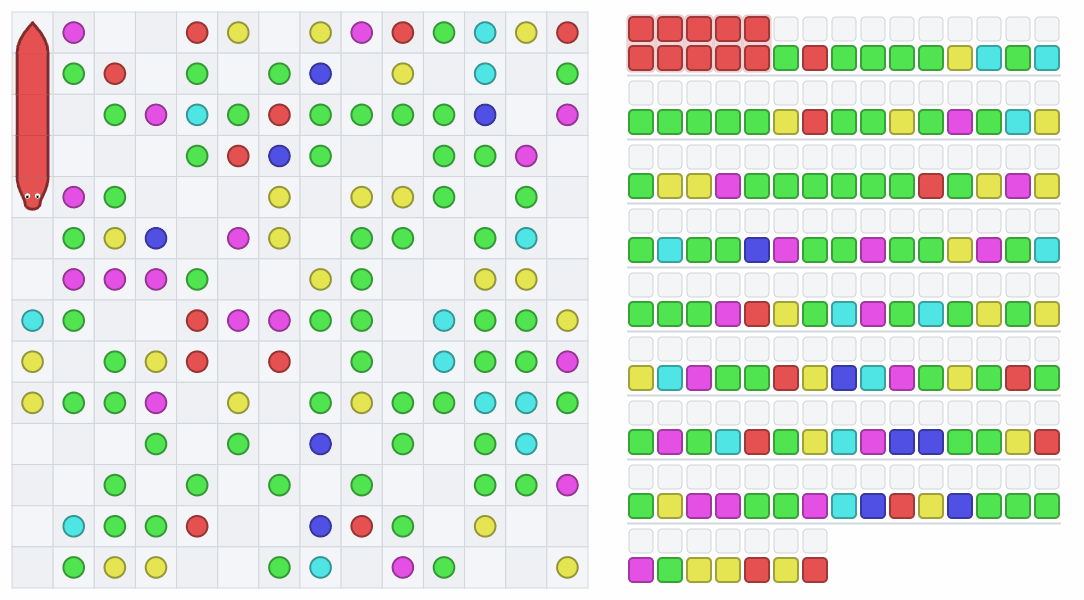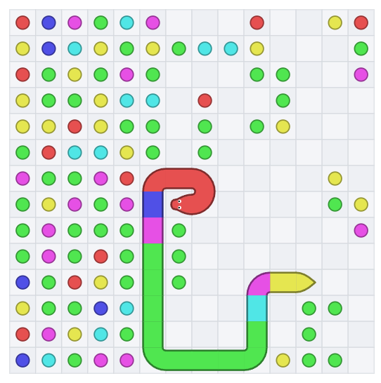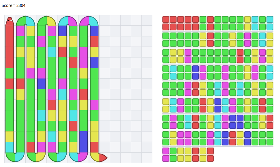 最終的にやったこととしては、左上から蛇の末尾の色を順番に詰めて、最後に1筆描きで回収するという処理でした。