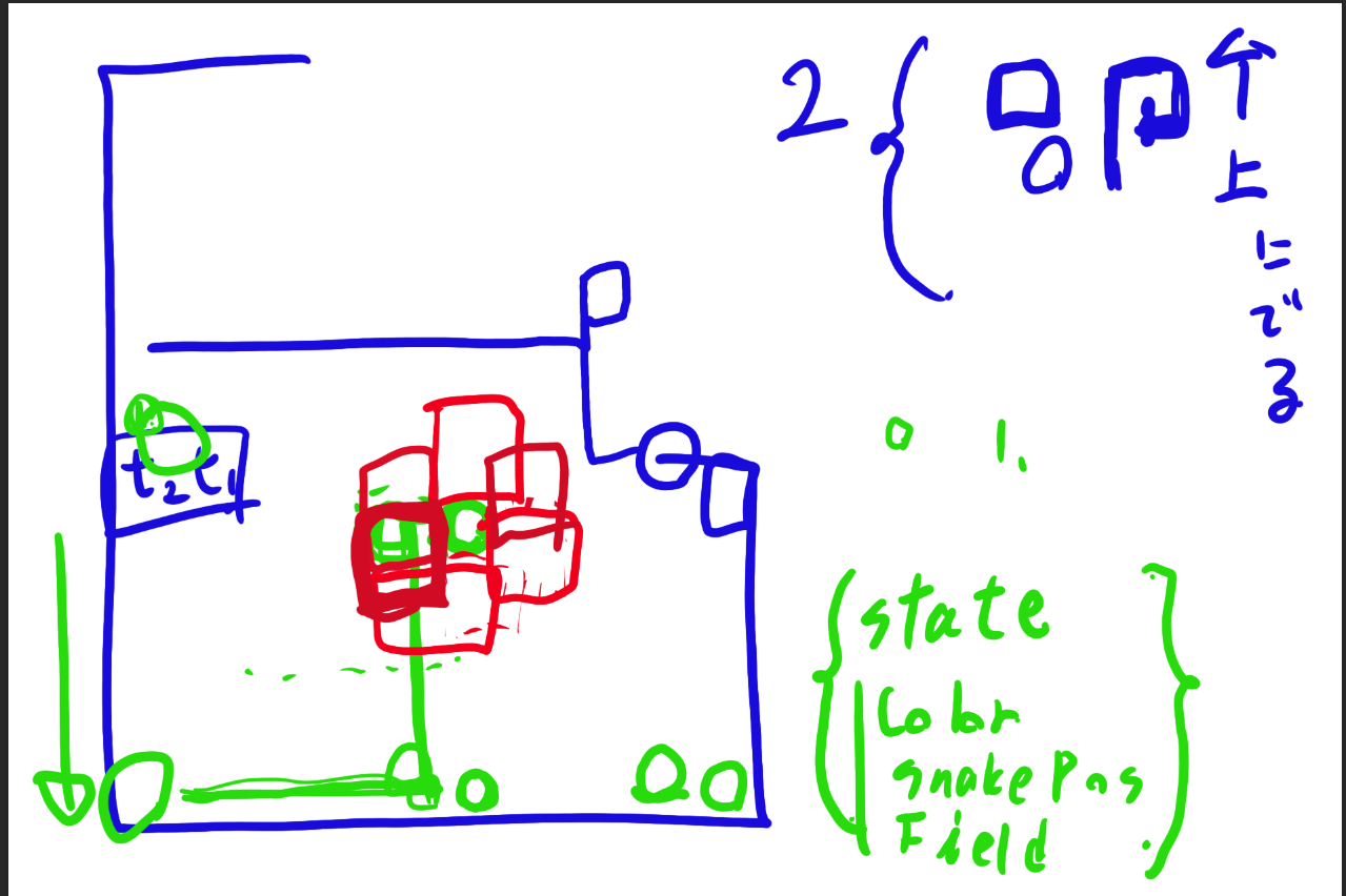 今回やりきれなかったことは、指定色を回収した後に後続の色を計画的に回収するとかですかね。左と下だけだとどうしても限界がある、でも自由に動かれるといつ千切れるかわからない。どこで体を噛み千切るかわからない状態でこれをやるのは無謀だなと思いました。