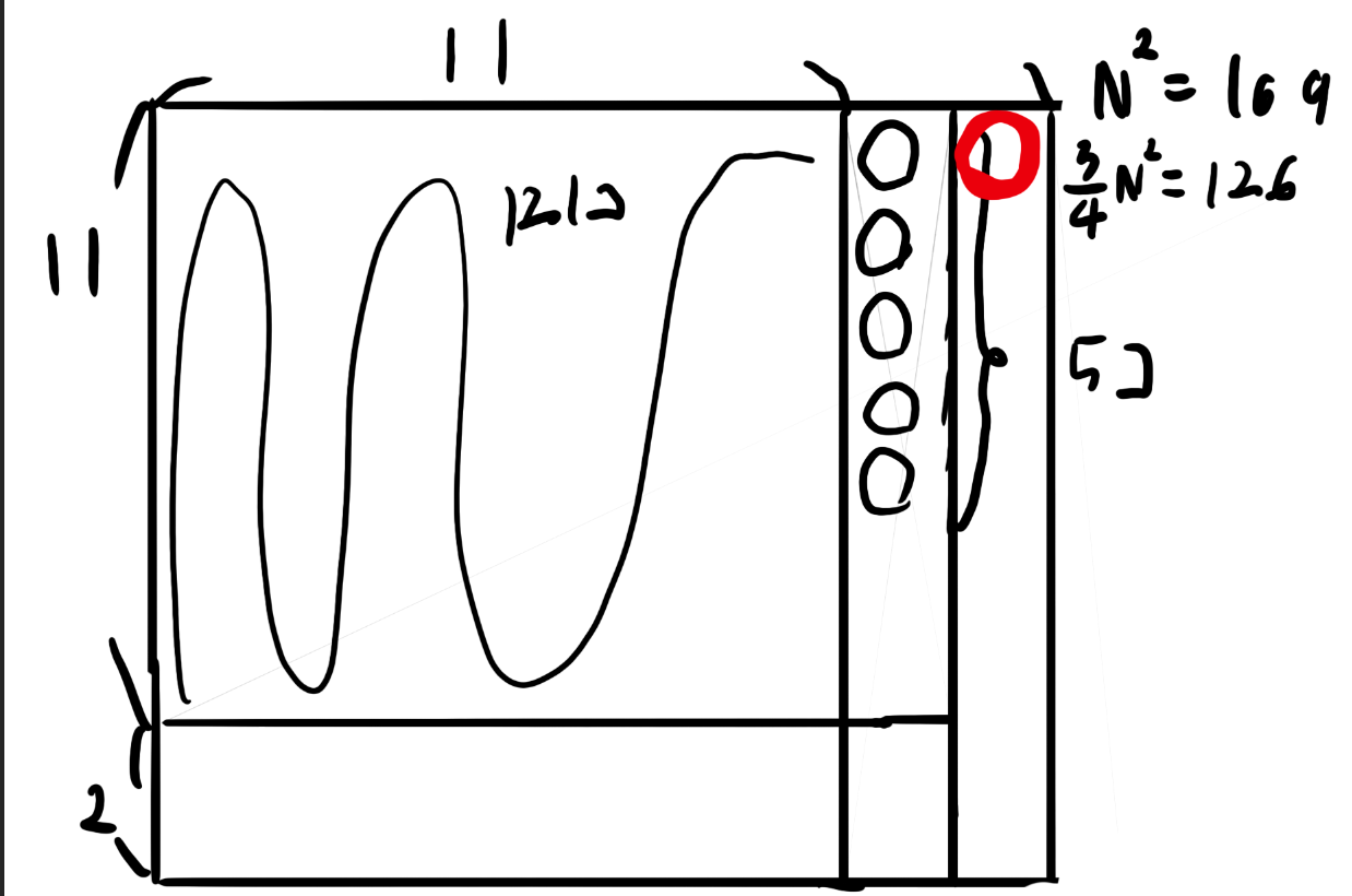 ty = N-2の場合のエッジケースが思ってたよりボロボロ出てきて困りますね。ty = N-2で場合分けした方が見通しがよくなるかもしれない。